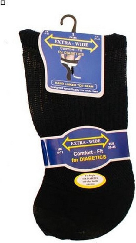 Artikelnummer: DIV 8033300 108727 zwart OverzichtDiabetes sokken - extra wijd (Per 3 paar). Deze sokken zijn geschikt voor diabetici dankzij de speciaal gebreide drukvrije boord. Hierdoor blijven de sokken goed zitten, hebben geen knellende randen en zijn zacht en comfortabel.