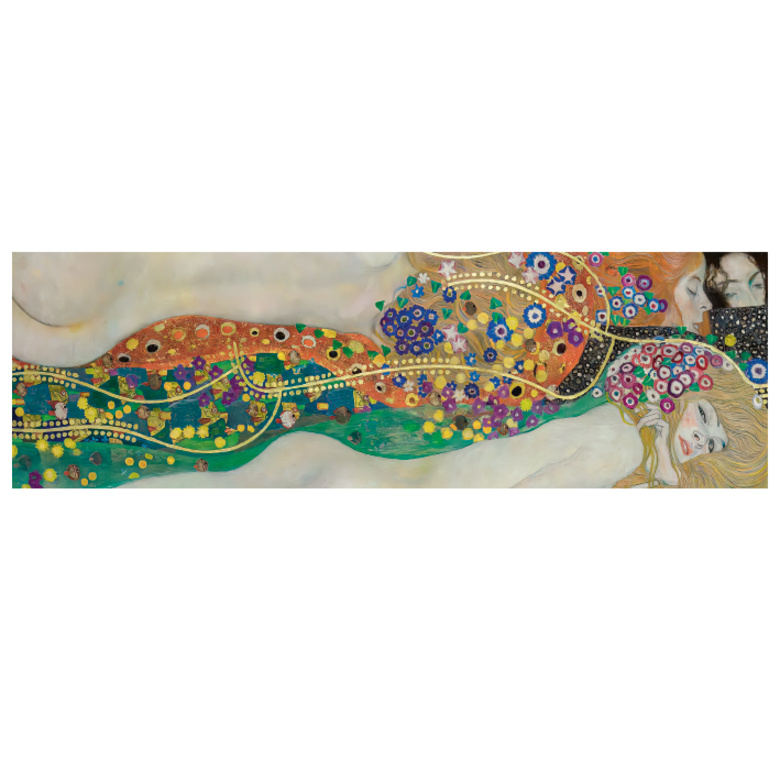De print is geïnspireerd op Waterslangen II van Gustav Klimt en laat een spel zien van vormen, kleurvlakken en verfijnde details. Warme tinten, diepe kleuren en zachte overgangen komen samen in een ontwerp dat blijft boeien zonder onrustig te worden.